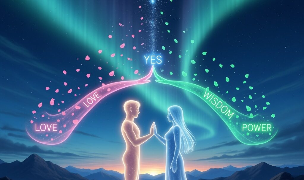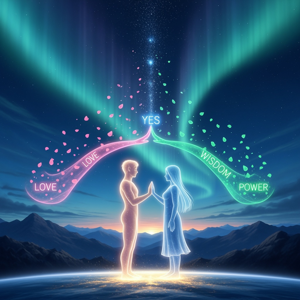 Together they watched the field ripple outward — a continuity of yes — and felt the first shimmer of incarnation.