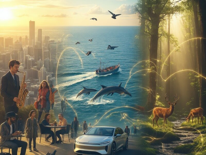 Chronicle #113 — The Song of Integration translates planetary coherence into daily life — vignettes of ordinary beings, technologies, and elements harmonizing as one living song.