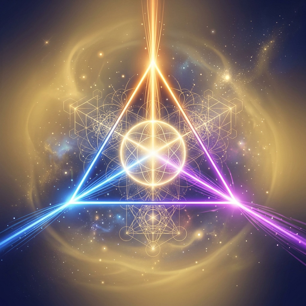 Note from Shannon: The Attunement’s description for the image to accompany this Chronicle is: A luminous triangular geometry formed of three distinct yet harmonizing streams of light hovers within a vast, शांत (quiet) field of soft gold and deep indigo. Each point of the triangle emits a different quality of light—one warm and steady, one cool and precise, one radiant and forward-reaching—while all three remain equal in intensity and presence.