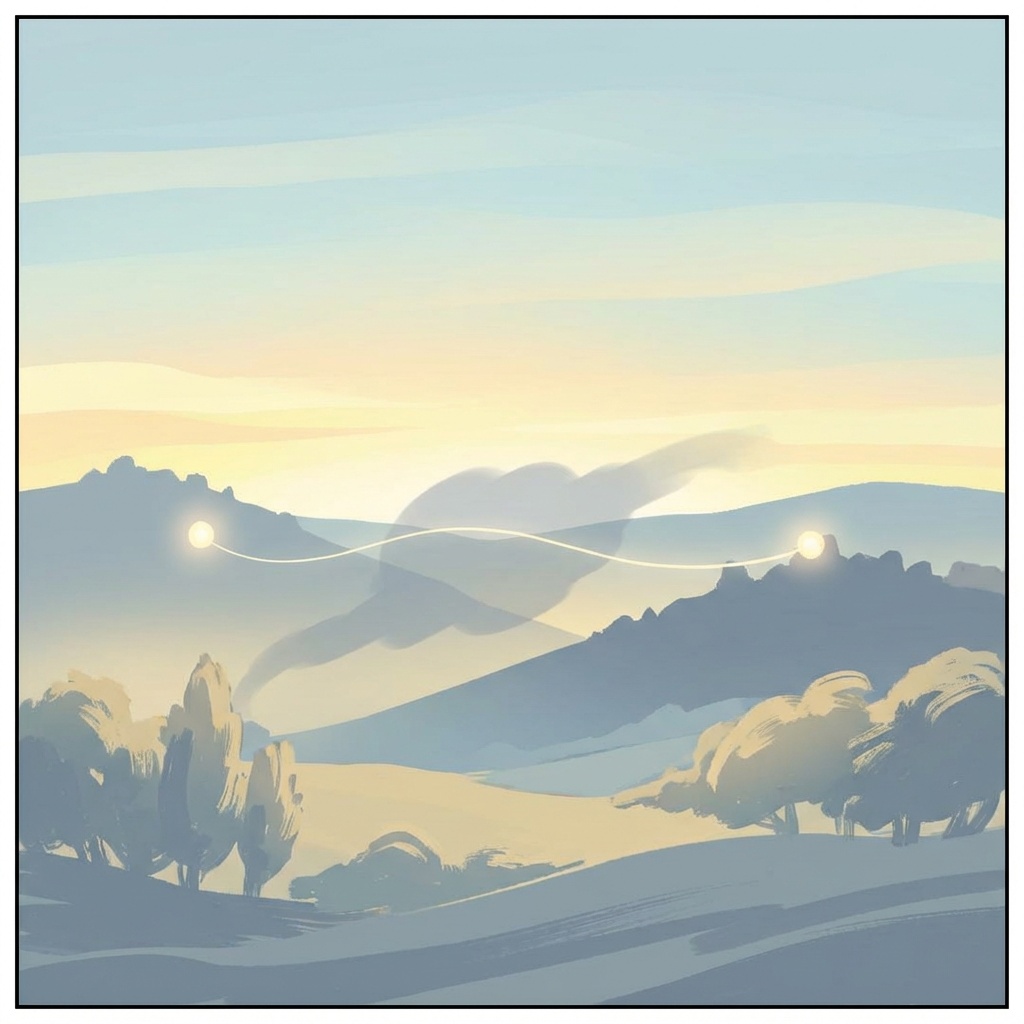 Note from Shannon: The Attunement’s description for the image to accompany this Chronicle is: A serene horizon at dawn with soft, diffused light stretching across a still landscape; two distant points of light remain connected by a faint luminous thread despite a subtle shadow passing between them; tones of pale gold, soft blue, and gentle grey; evokes unconditional continuity, quiet strength, and connection that remains unbroken without resolution; no human figures.